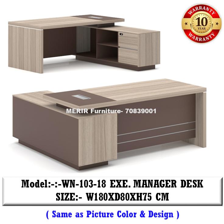 Model:- WN-103-18 | Desks and Office Systems | Executive manager desk price | size: 180X80X75 cm. | Color:- Tina