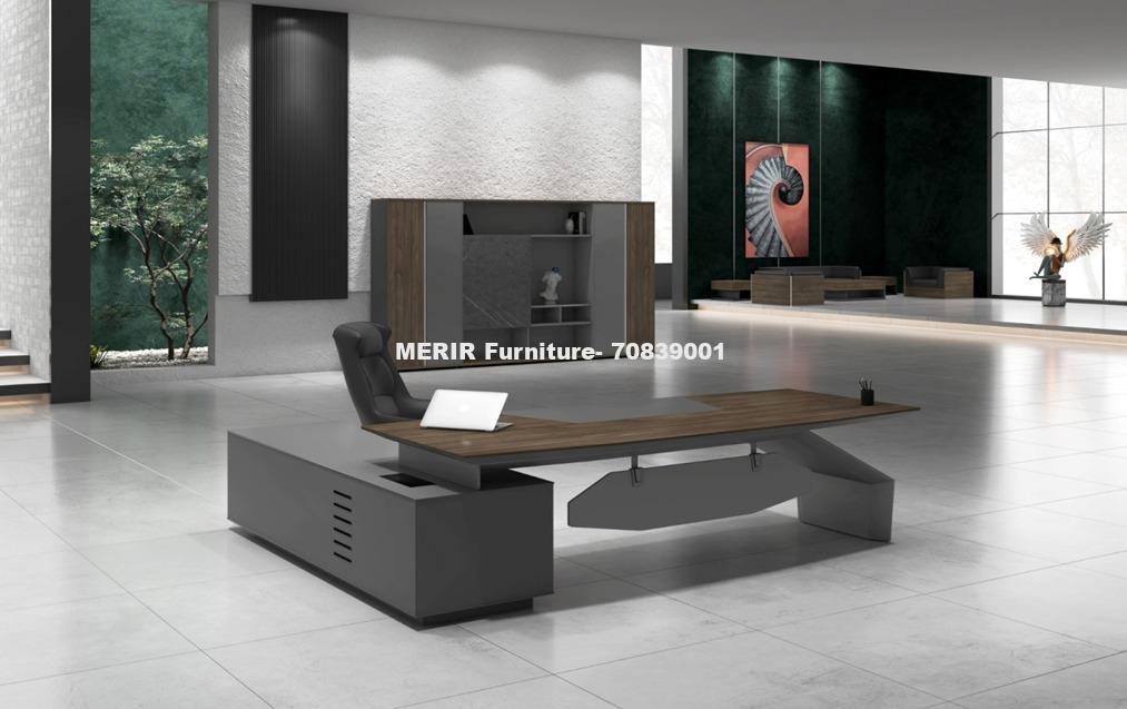 W/SIDE TABLE DESK , MULTI FUNCTION CABLE BOX ON THE DESK TOP, AND LOCKABLE FIXED PEDESTAL 3 DRAWERS .