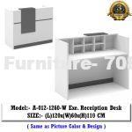 Model:- A-012-1260-W Exe. Reception Desk SIZE:- (L)120x(W)60x(H)110 CM – Color:- White