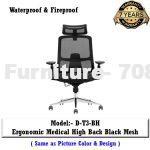 Model:- D-T3-BH Ergonomic Medical High back Office chair , Black full mesh ,