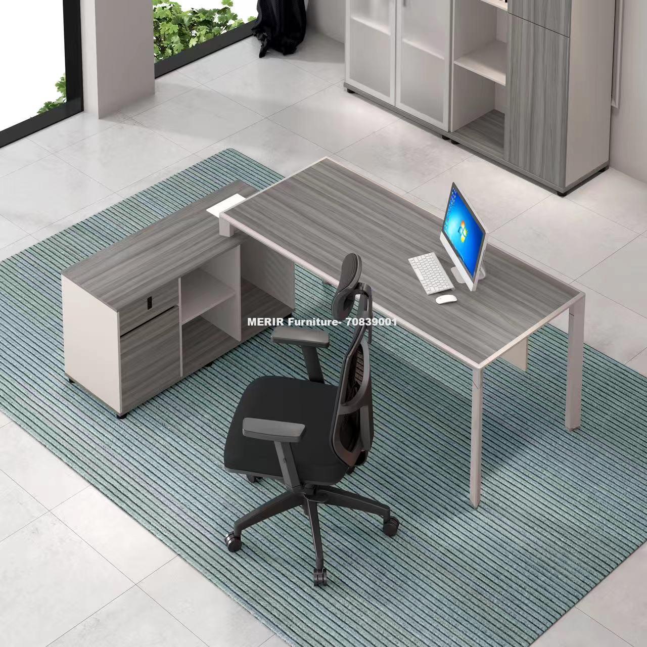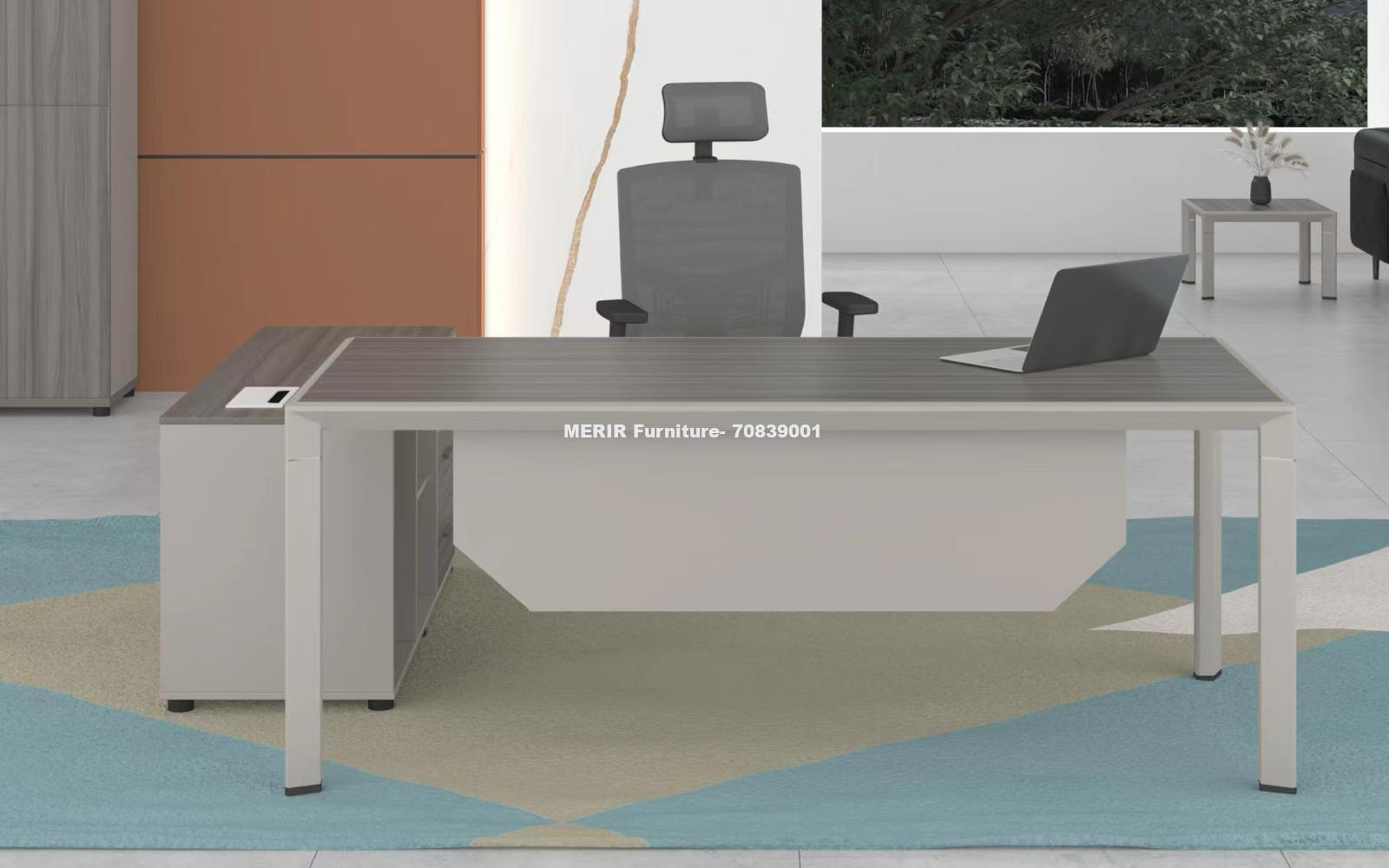 W/ MULTI FUNCTION CABLE BOX ON THE DESK TOP, SIDE TABLE DESK AND LOCKABLE FIXED PEDESTAL 3 DRAWERS WITH PASSWORD LOCK.