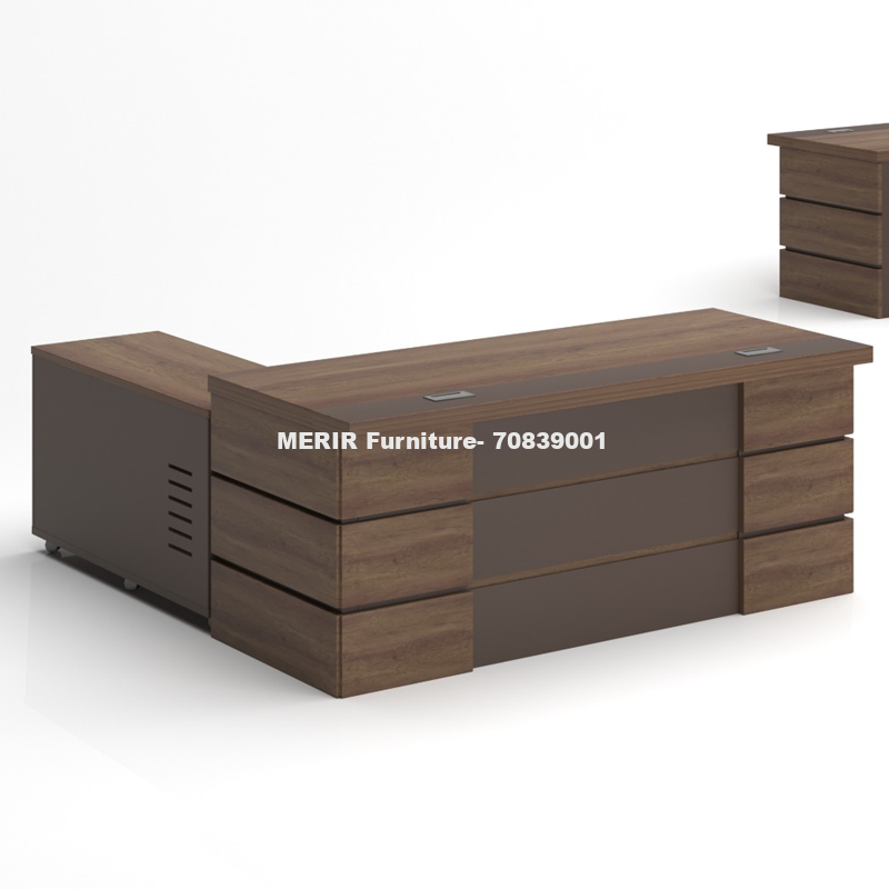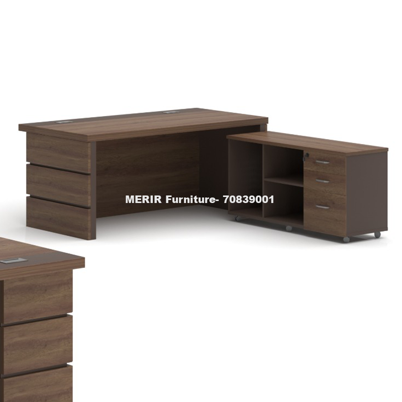 Model:- OF-1004-16 Executive Manager office desk size: 160*80*75cm. With side desk with build in 3 drawers with lock and open box for multi storage.
